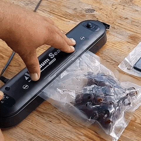 La envasadora succiona el aire de las bolsas sellando herméticamente. Solo debes colocar el alimento, cerrar y presionar el botón. ¡Así de fácil!