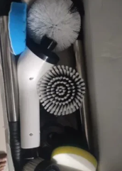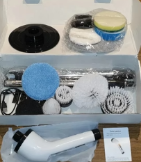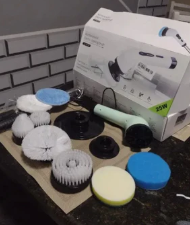 Recibes varios cepillos y esponjas, barra ajustable, cargador, y más para cubrir todas tus necesidades de limpieza.